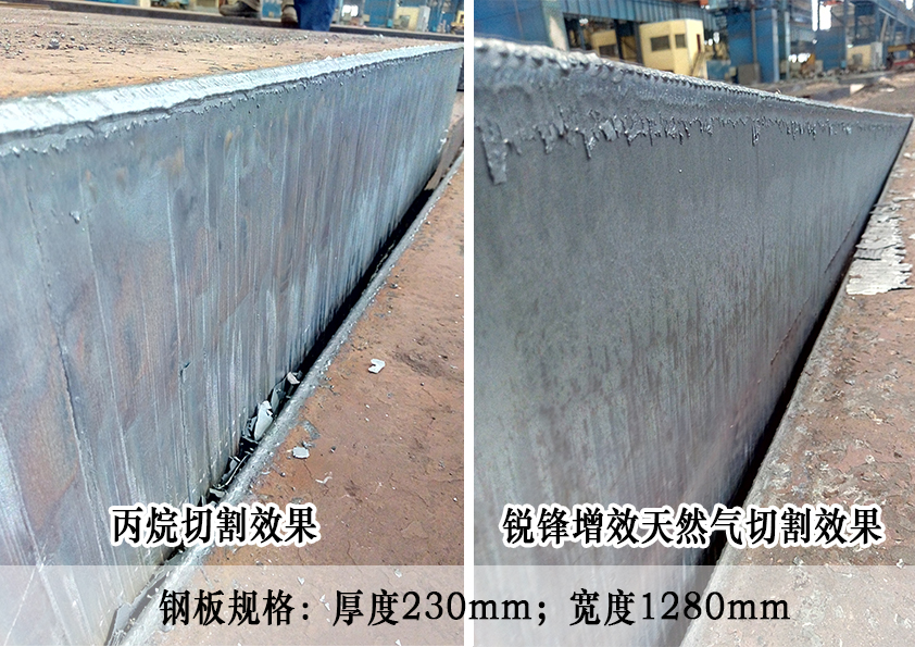 增效天然氣對(duì)比丙烷切割鋼坯對(duì)比