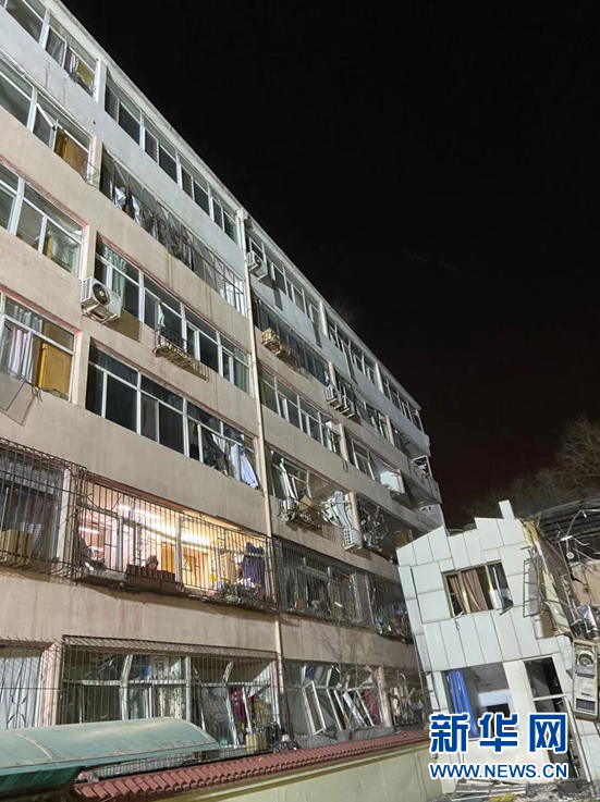因受爆炸波及,與醫(yī)院職工餐廳臨近的一棟居民樓受損。新華網發(fā)(包頭市消防救援支隊供圖)